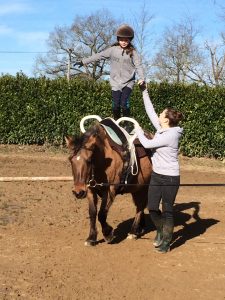 abord échauffés , petit débrief sur les règles de la voltige puis en piste pour effectuer de multiples figures sur Oceane . Les cavaliers ont adoré une nouvelle date vous sera proposé pour les prochaines vacances ! Ouvert à tous les niveaux .