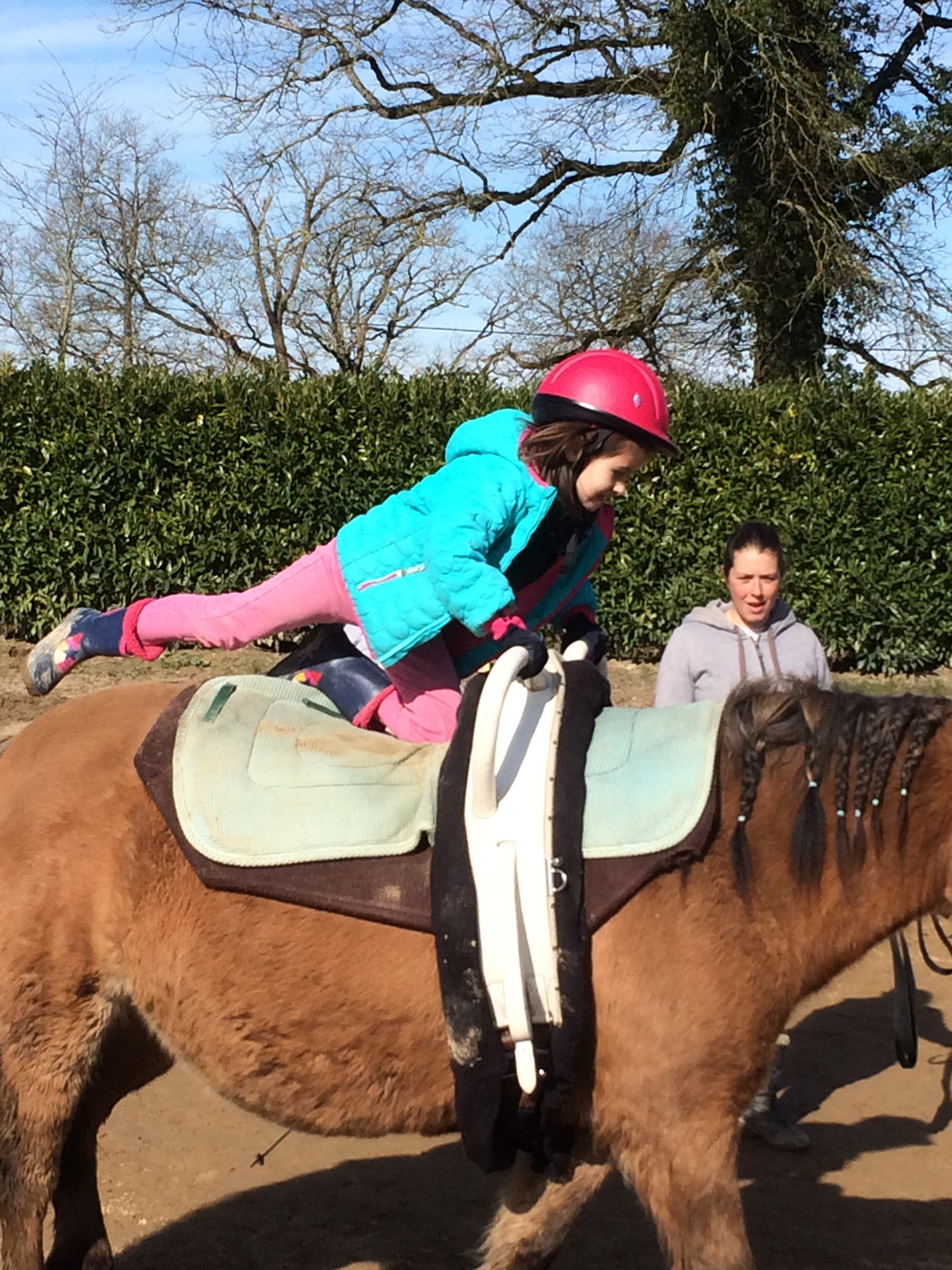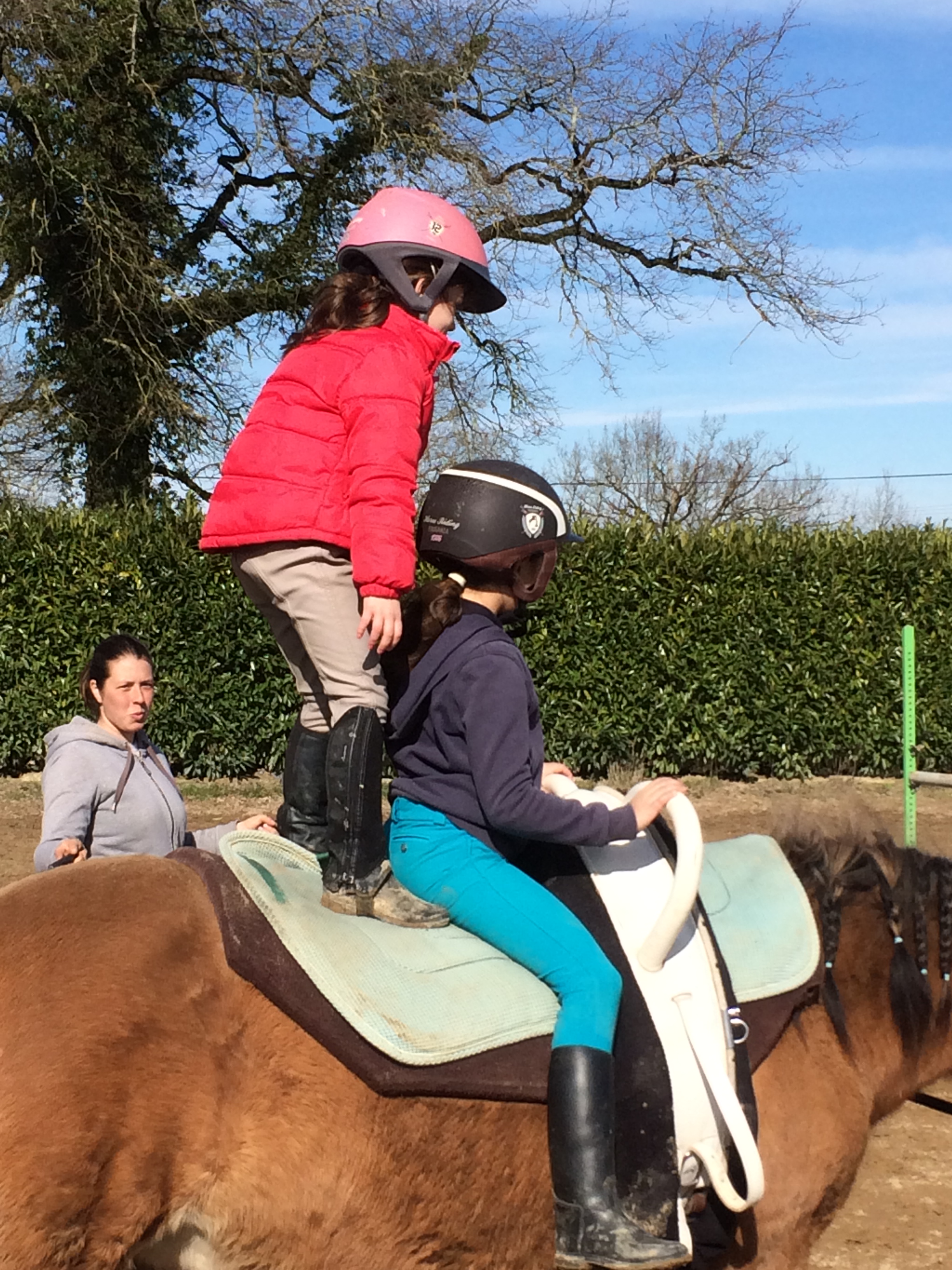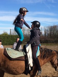Le jeudi 8 mars c’est sous un soleil radieux que les cavaliers des écuries de Monconseil ce sont essayés à la voltige sous les conseils avisés d’Angélique Mathé et Julia ! C’est une discipline ou le cavalier doit effectuer seul ou à plusieurs des figures acrobatiques et esthétiques sur un cheval longé sur un grand cercle aux 3 allures . Les cavaliers ce sont d’