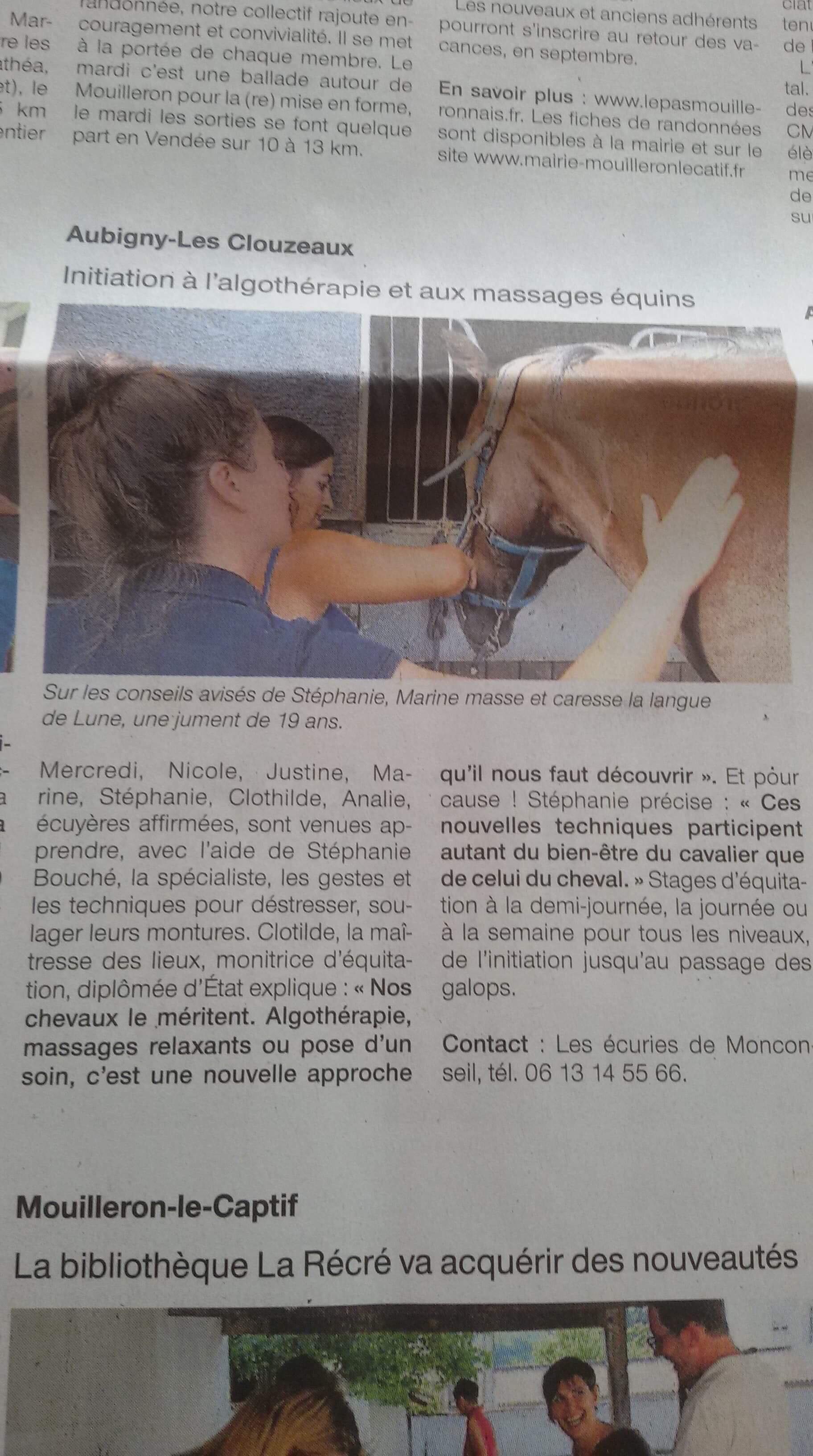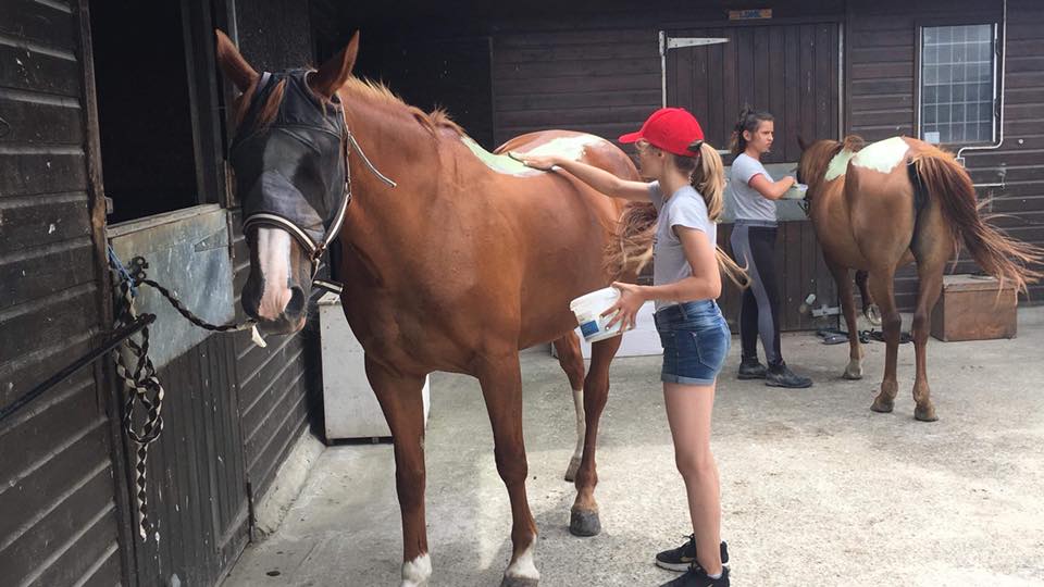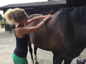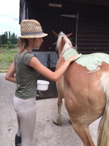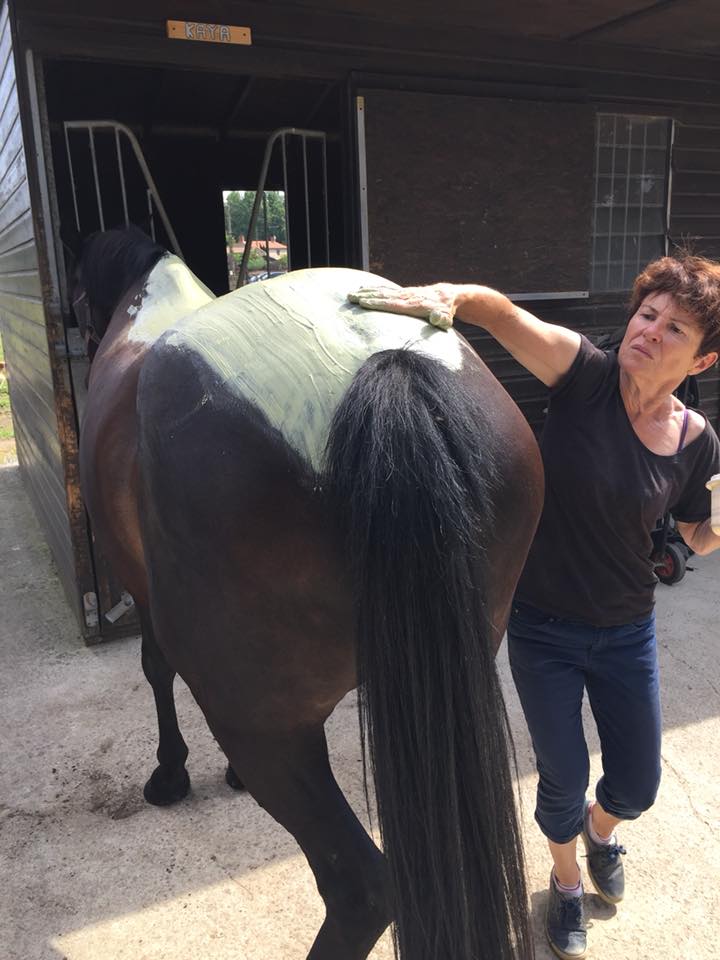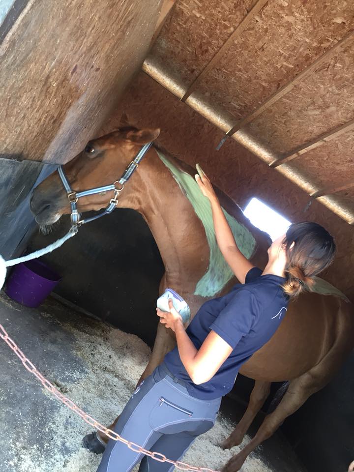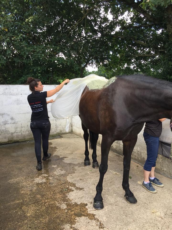 Mercredi 4 juillet 2018, c’était détente et relaxation pour chevaux et cavaliers grâce au stage d initiation aux massages et a l’algotherapie de Stéphanie Bouché , intervenante pour nous apprendre a relâcher nos chevaux par des massages doux sur des endroits spécifiques puis la pose d’un soin d’algue marine . Stage très enrichissant permettant une nouvelle approche de nos montures , un véritable moment de complicité . A Recommander !!!